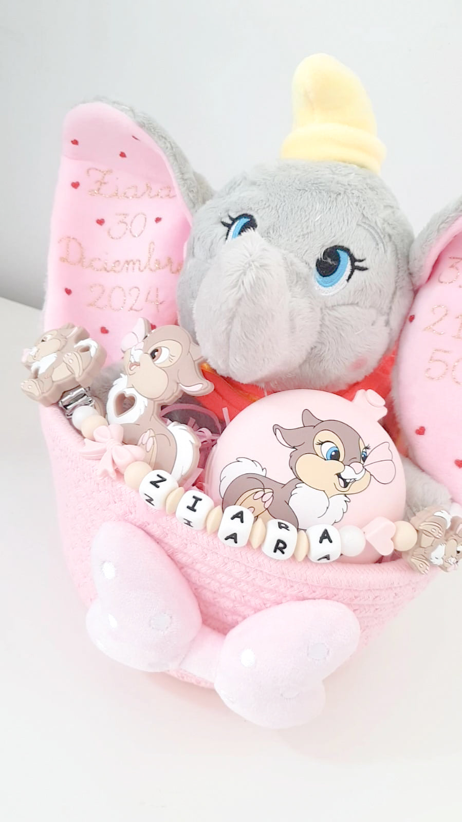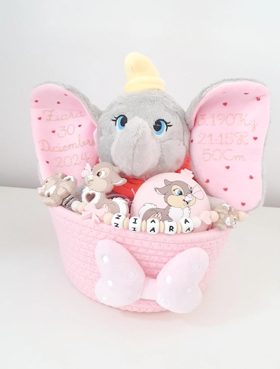 ¡Prepárate para derretirte de ternura! Esta preciosa canastita personalizada es el regalo perfecto para dar la bienvenida al mundo a una personita muy especial. Encabezada por un adorable elefantito con orejas gigantes llenas de amor (¡literalmente!), en las que están grabadod los datos más importantes del gran día: Día , hora, peso y medidas 🐘💕