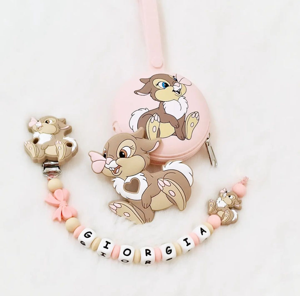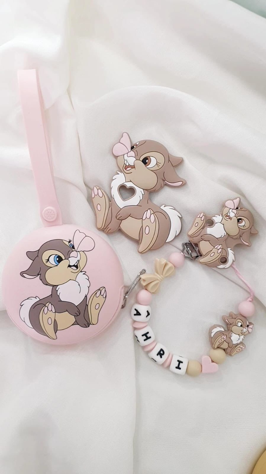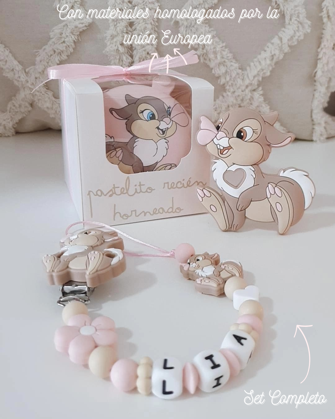 ¡Descubre nuestro encantador set de regalo con chupetero personalizado! Este conjunto incluye un chupetero con el nombre de tu pequeño, un mordedor suave y seguro, y una práctica bolsa guarda chupete, todo completamente personalizado para que sea único. Cada elemento está diseñado con amor y cuidado, y se presenta en una caja súper bonita que lleva la adorable frase "pastelito recién horneado". Es el regalo perfecto para celebrar la llegada de un nuevo bebé o para sorprender a los papás en cualquier ocasión. ¡Haz que cada momento sea especial con este set lleno de dulzura!