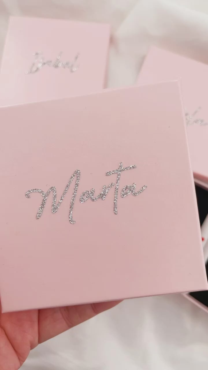 Cada pulsera se presenta en una elegante caja personalizada con el nombre de la invitada, convirtiéndola en un regalo inolvidable para tu boda o evento. Este detalle no solo es original, sino que también será un recuerdo que guardaran para siempre. ¡Haz que tu celebración sea aún más especial con esta pulsera personalizada para boda!